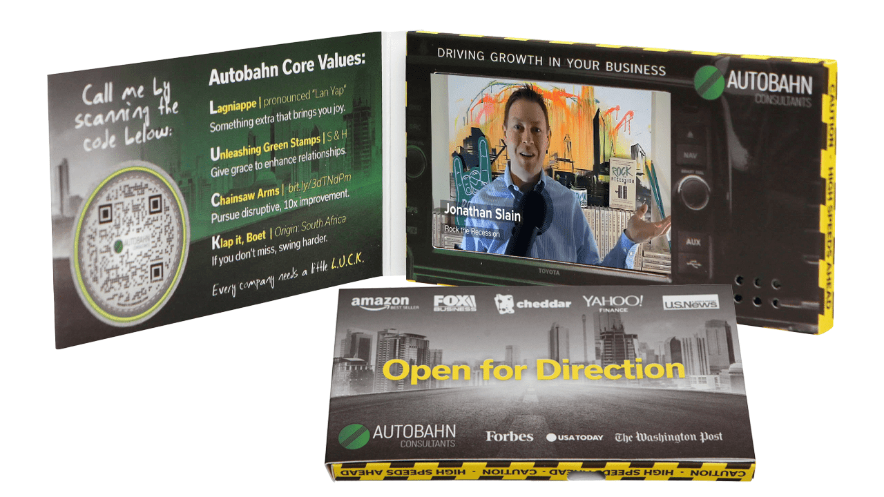 Re-chargeable Battery | Charge/Data Cord | Speakers | Full Color Printing | Matte or Soft-Touch Lamination | Loading of Video(s) | Instruction Card